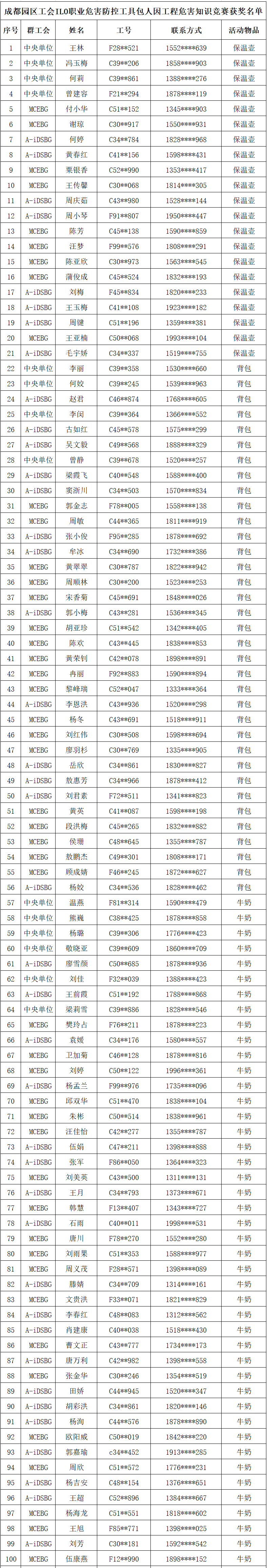 ILO人因工程知识竞赛 获奖名单