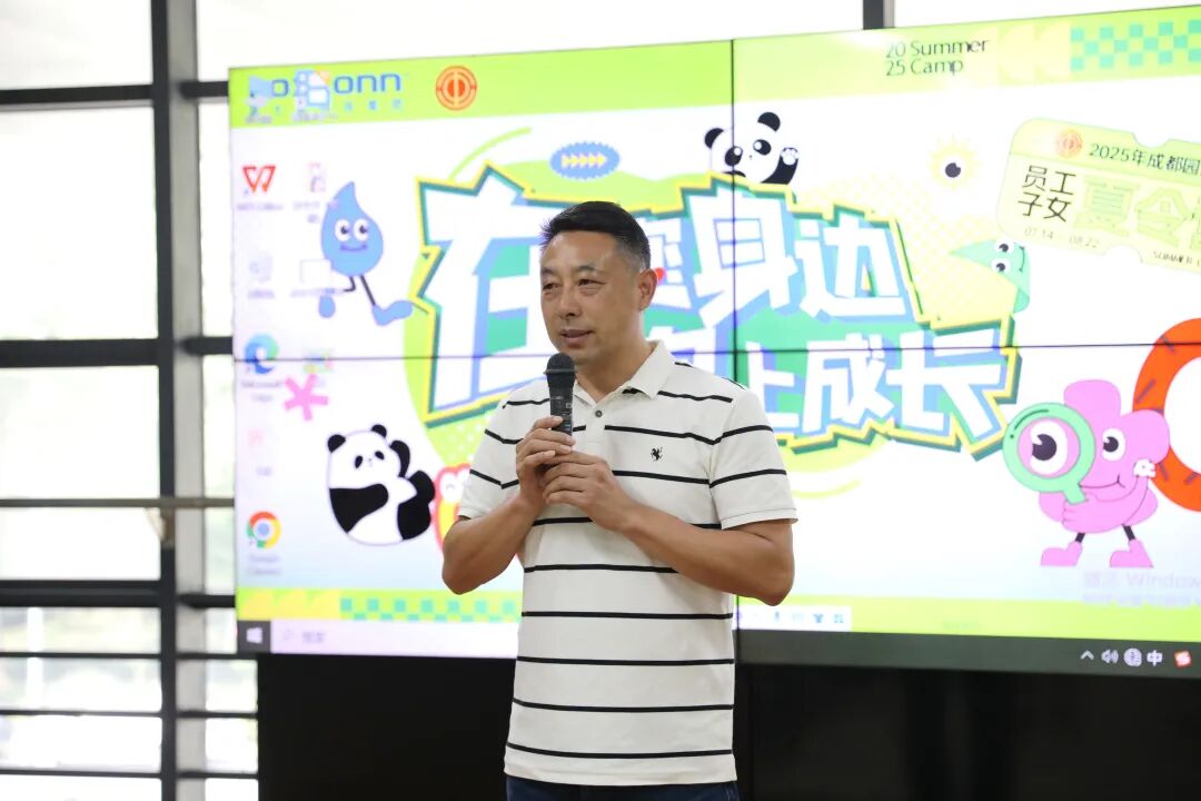 邱先辉处长发言,他首先热情欢迎各位小朋友来到园区欢度暑期,并感谢各位工作人员和老师的前期准备以及各级工会与主管的鼎力支持。