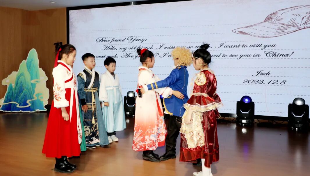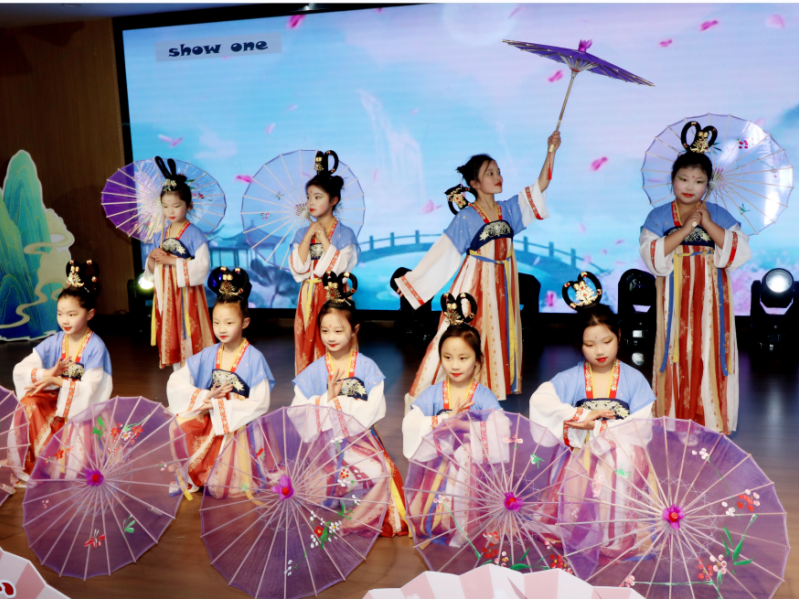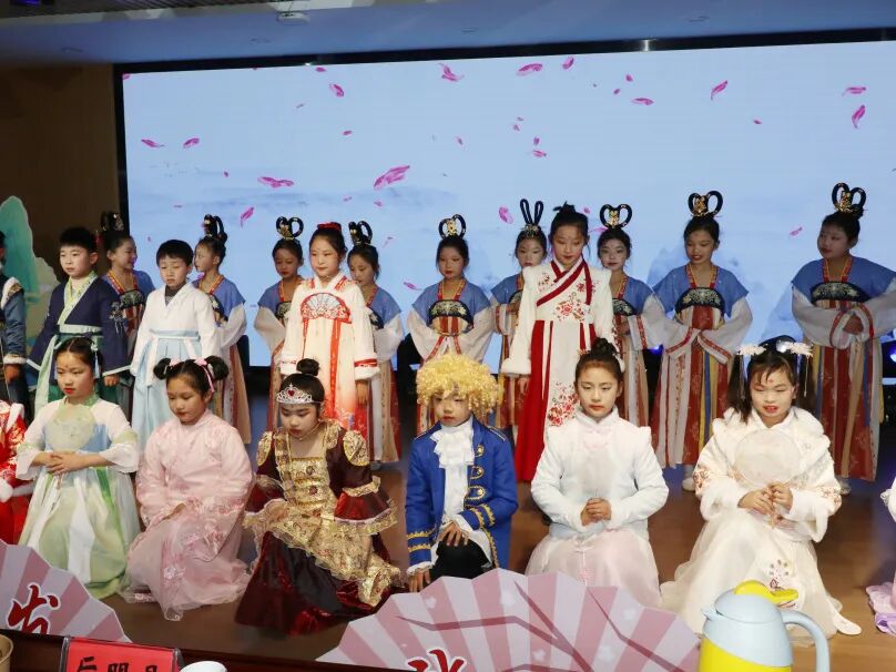 英语文化节闭幕表演活动分为三个部分:传承过去,实践当下,畅想未来。在陆校长精彩的致辞之后,我们跟着三年级的孩子们带着国际友人穿越到唐朝。梦回唐朝,孩子们自豪地展示了大唐璀璨的诗词文化,外国友人沉浸于我们的诗词韵律之美。唐朝国运昌盛,文化繁荣,服饰也极具特色。唐装秀,孩子们在舞台上展现个性,他们自信的步伐,婉约的动作给大家留下了深刻的印象。