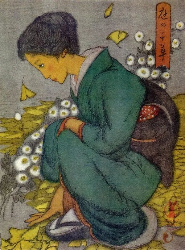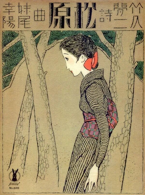 竹久夢二『繪入小唄集 三味線草』口繪(卷首插畫)