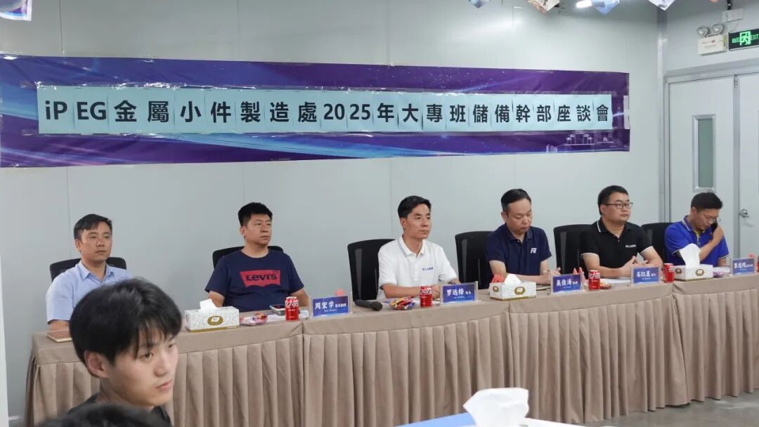 为深入了解储备干部工作状态,搭建沟通交流平台,7月18日,iPEG金属小件制造处于A13教育训练室举办2025年大专班储备干部座谈会。罗远锋处长携厂部级主管,与30余名储备干部齐聚一堂,共话成长、共解难题。