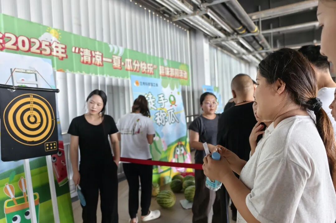 活动现场,绿豆汤和西瓜冰糕全程供应,“量产期间大家都辛苦,想让大家趁休息时间放松一下。” 工会李玉霞说,从选品到环节设计,都想着 “实用又热闹”—— 西瓜能解暑,洗衣液、清凉套装是生活必需品,让大家玩得开心,拿得实在。