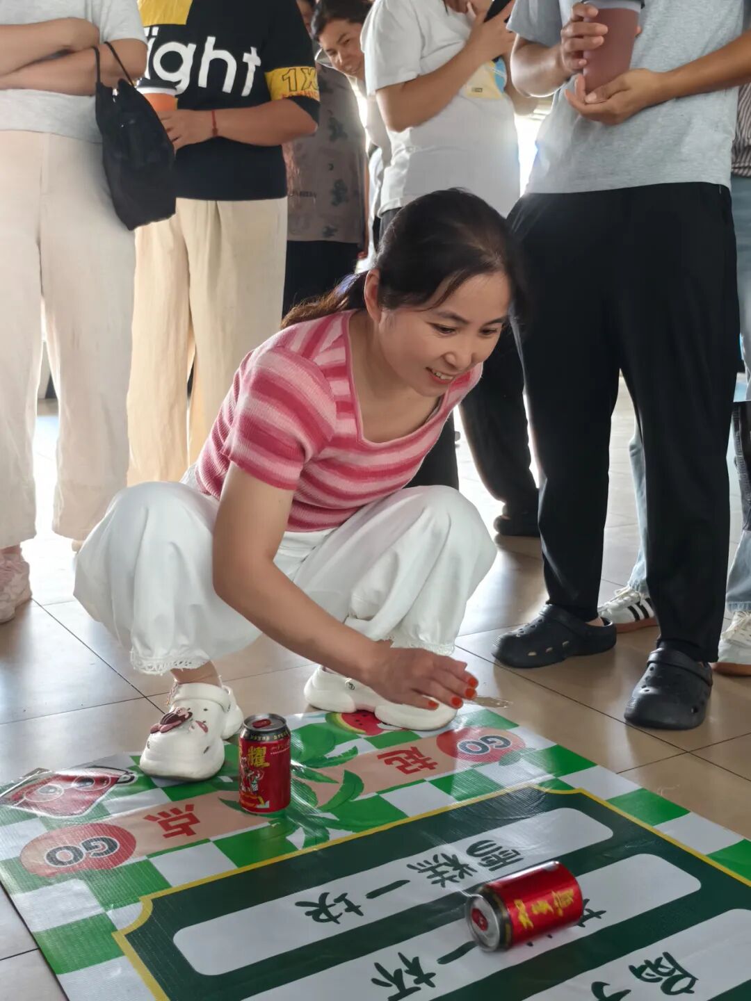 滚圈区的笑声最是密集。前面获得的奖券到这里可以凭实力“滚”奖了,布上划分着不同区域,对应着毛巾、卫生巾、洗衣液等各色奖品。有人单手扶着王老吉,轻轻一推,饮料瓶在布上晃晃悠悠,最终稳稳停在 “清凉套装”,立刻欢呼着去领奖;有人用力过猛,饮料瓶直接滚出布外,引得周围人哈哈大笑,自己也挠挠头笑着说:“这王老吉还挺有脾气!