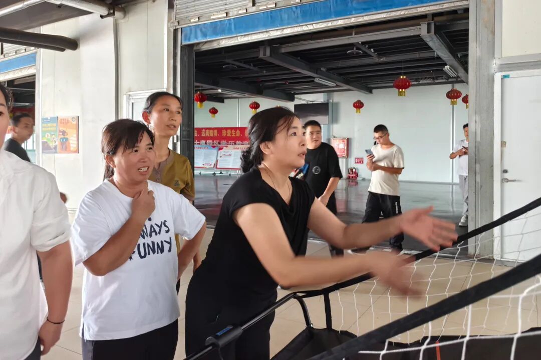刚走到连廊入口,就被投篮区的欢呼声围住。篮球架前早已排起长队,有人技艺高超引得围观者齐声喝彩;也有新手略显紧张,球磕在篮板上弹回来,自己先笑出了声。“平时在产线站一天,胳膊都僵了,投几个球浑身舒坦!” 刚领完奖品的李姐擦着汗说,脸上是藏不住的笑意。
