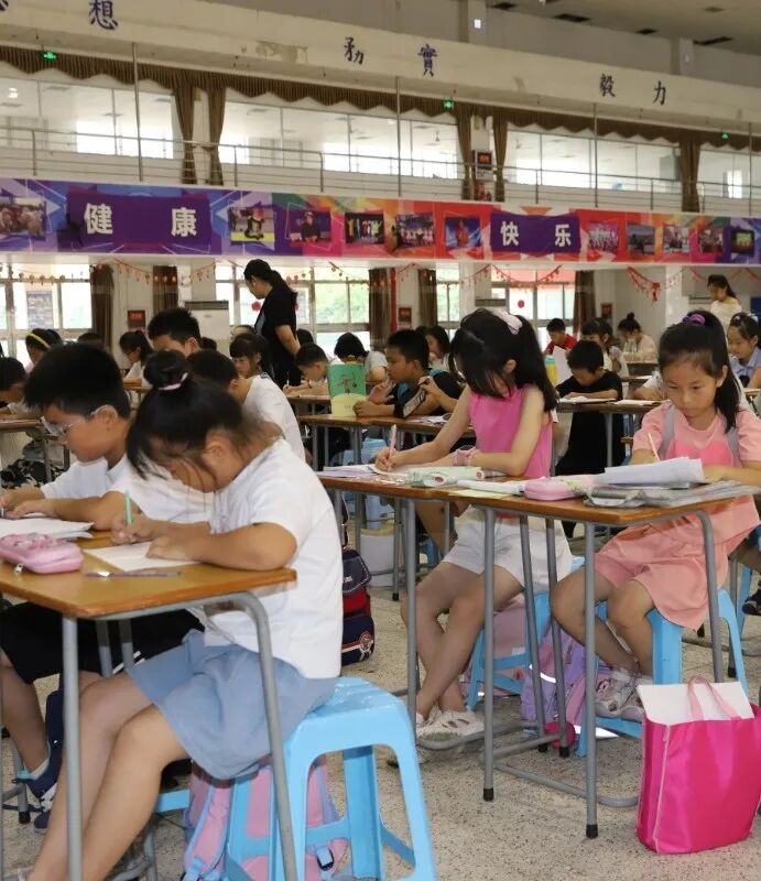 为了便于员工接送以及孩子们就餐、运动等事项,经过综合考量,本次暑期班开课地点为A区员工活动中心一楼大厅。暑期班每日日程中除作业书写外,更有美术等素养课程以及户外体育课程,以提升暑期班孩子们的综合素质。