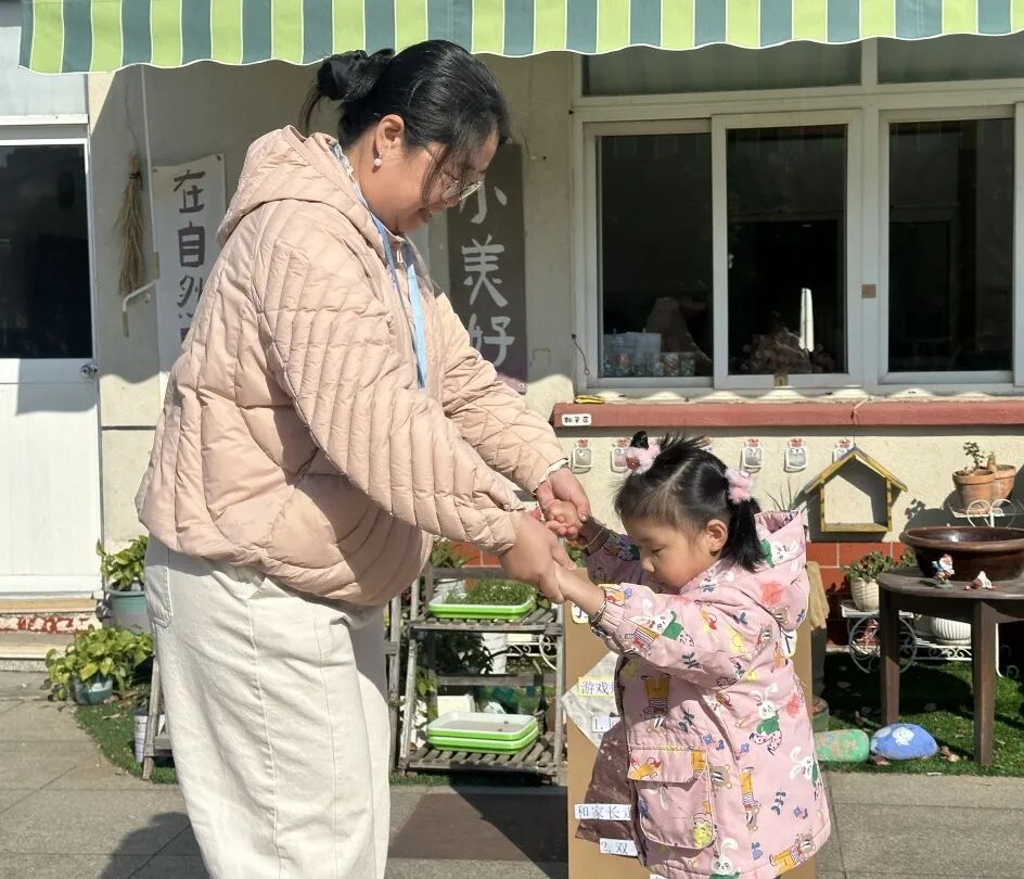 家长们牵着宝贝的手,