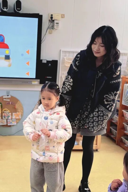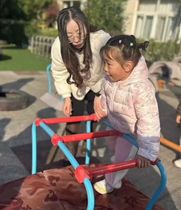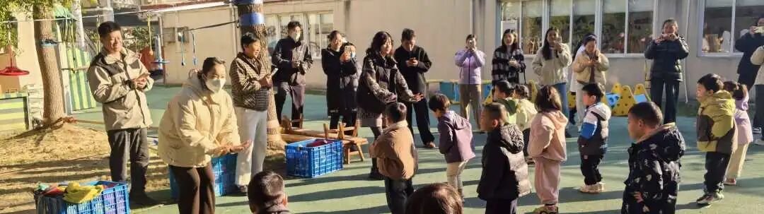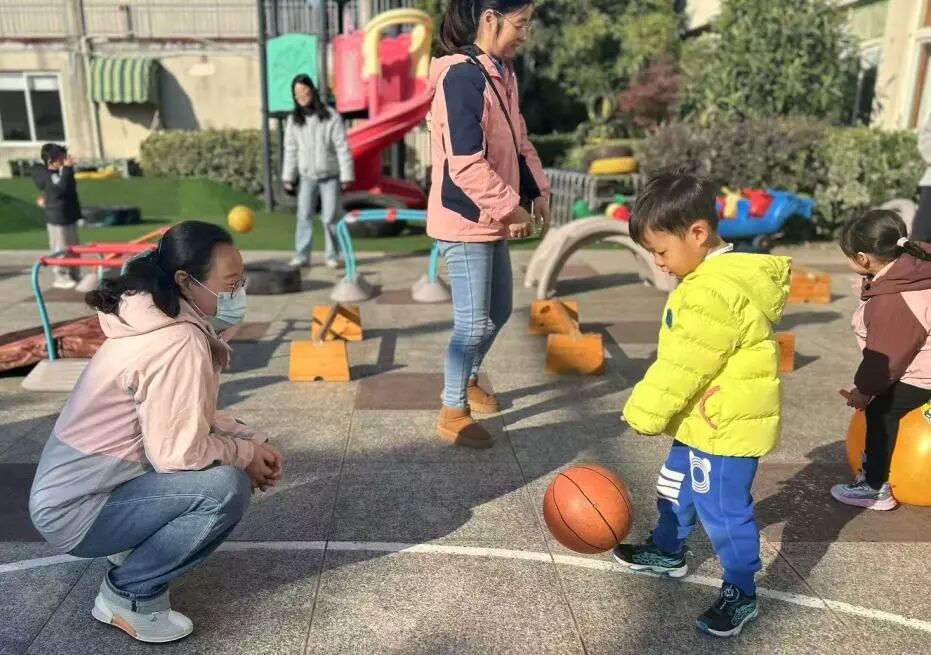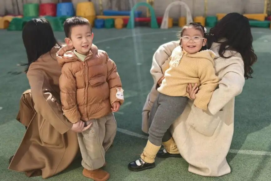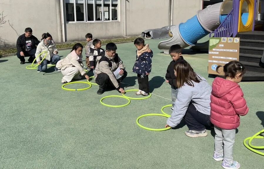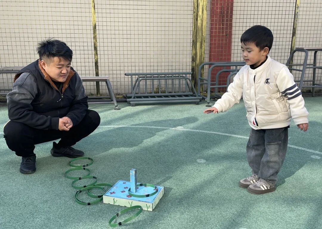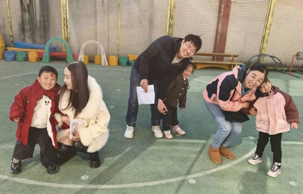 家长们俯身相伴,