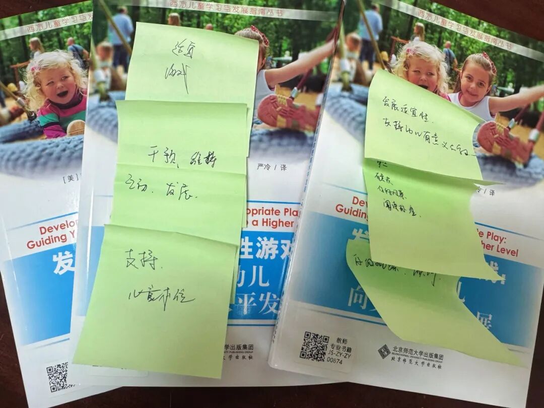 老师们潜心共读《发展适宜性游戏》,在理论的字里行间探寻游戏与发展的深层联结;结合日常教学实践深入思索,让书中的智慧真正落地生根,实现理论修养与实践能力的双向提升。