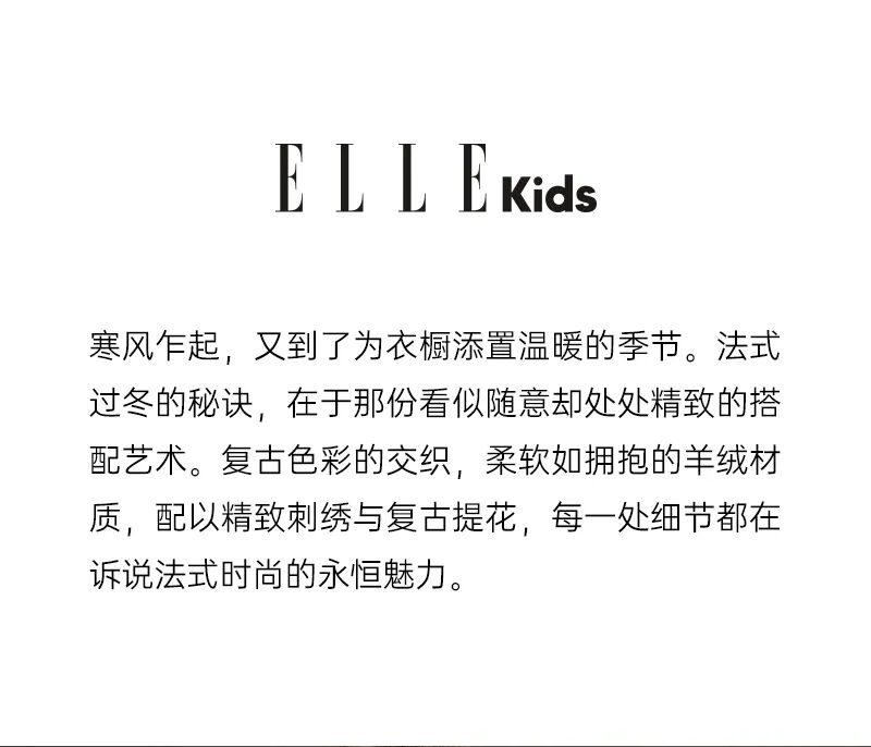 文章内容来源于公众号:ELLE KIDS童装童鞋,点此可查看原文,内容版权归相关企业所有,本网站仅供交流学习。若涉及版权问题或存在侵权情况,请及时与我们联系,我们将第一时间进行删除处理。