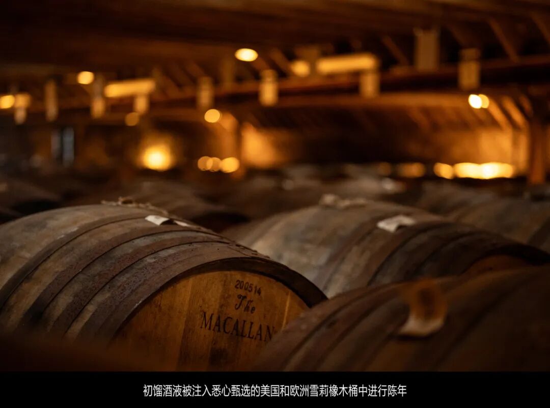 当橡木桶抵达苏格兰时,它们不再是容器,而是“风味的主宰者”。麦卡伦威士忌中高达80%的香气与口感,都诞生于木与酒的共生关系。欧洲橡木带来浓郁果干与辛香,美国橡木则添入香草与清新果香,两者相遇,如同时间的双重奏,让麦卡伦的每一瓶酒都呈现出层次分明的诗意平衡。