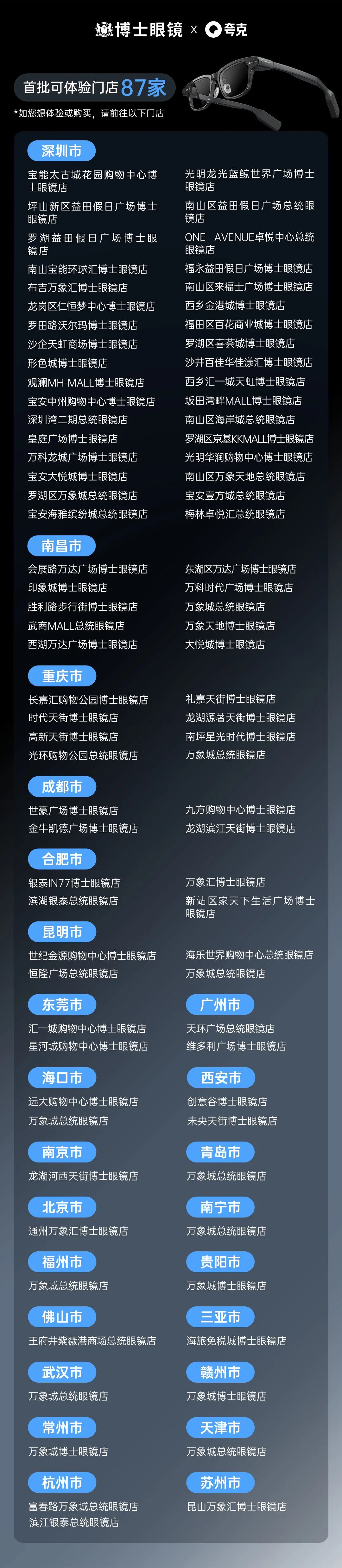 即日起,前往指定门店即可亲身体验这款划时代的智能设备,在博士眼镜购买夸克AI眼镜S1的用户,还可享受专业的验光与配镜服务。
