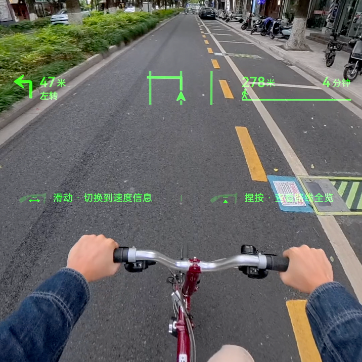通过光波导技术,导航时,箭头直接“铺”在路上,甚至在与外国人面对面交流时,语言会变成字幕再转换成中文,虚拟与现实无缝交织。