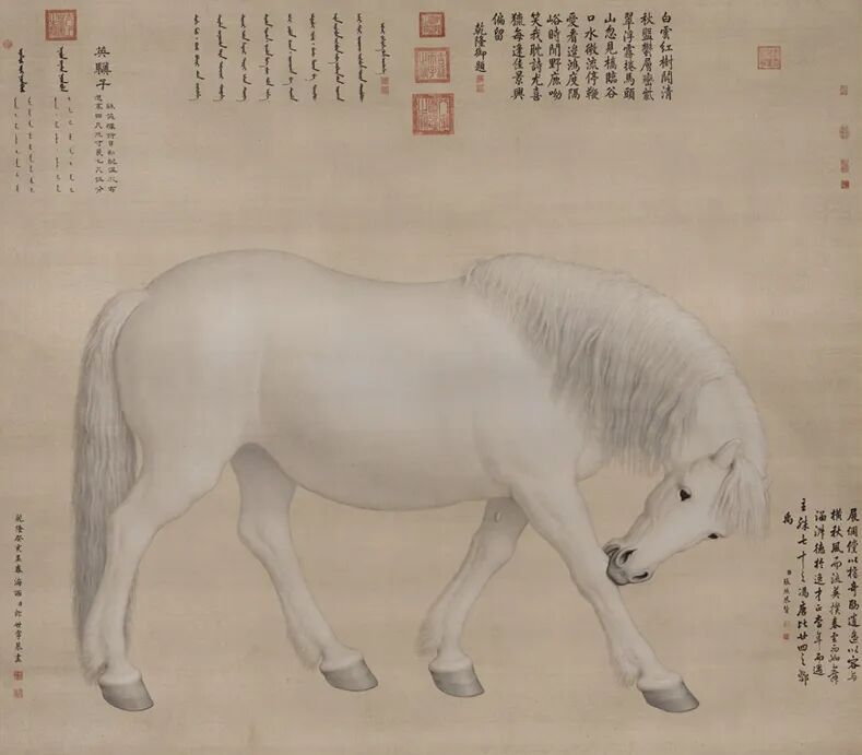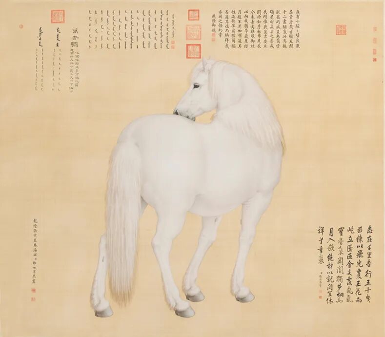 这四匹骏马身世显赫,它们皆是清代乾隆皇帝的御骑爱驹。为此,乾隆皇帝特命宫廷画师郎世宁为它们绘制肖像。郎世宁笔触精妙,骏马神采跃然纸上。如今,在这本日历中,读者得以感受它们一如往昔的灵动英姿。