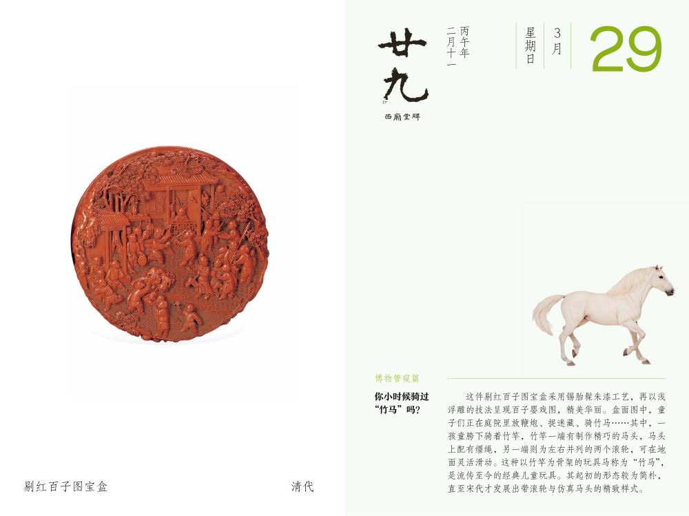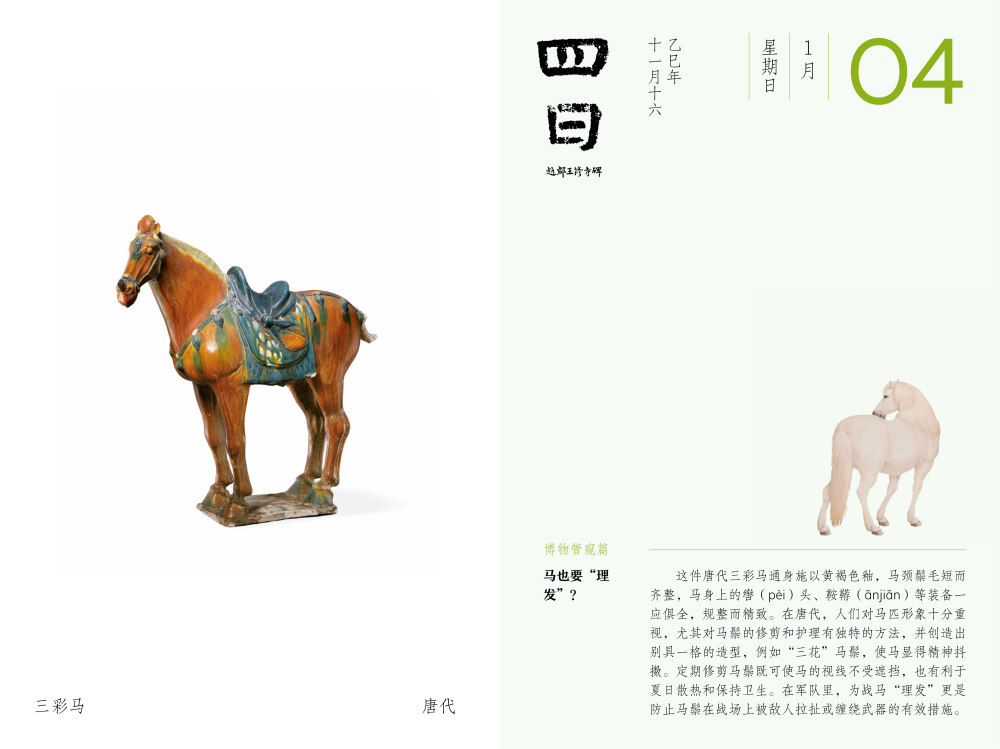 《故宫日历》青春版通过“博物管窥”“成语诗词”“骥影故事”“历代马事”四大篇章,以四季为序,系统梳理了马在中华文化中的悠久历史与丰富内涵。