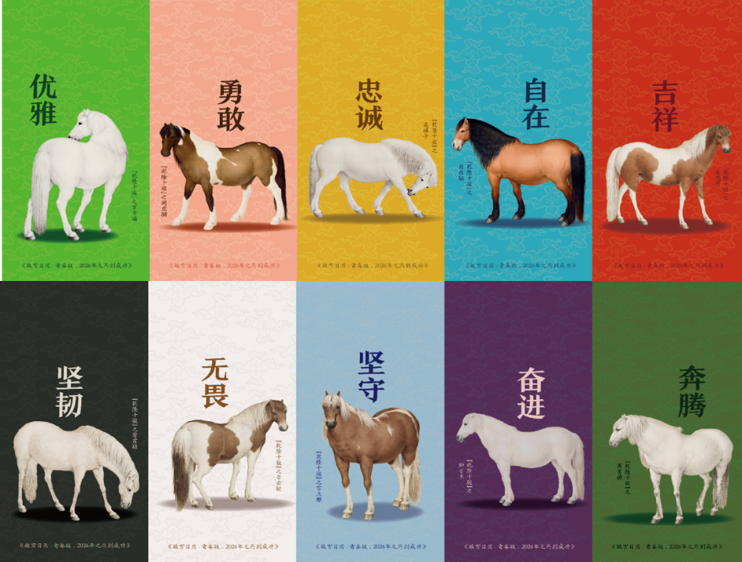 《故宫日历》青春版附赠10张“乾隆十骏”主题文物手机壁纸,购买日历即可扫码领取,让良骥的优秀品格和“马到成功”的日常祝福融入你的2026年。
