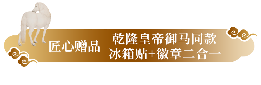 《故宫日历》青春版特别附赠一枚以清代郎世宁《乾隆皇帝大阅图》轴中御马为设计原型,集“冰箱贴”与“痛包徽章”双功能于一体的精美文创。它再现了乾隆皇帝阅兵时所乘骏马万吉骦的风采,并可一物两用:既能作为冰箱贴点缀家居,更能轻松佩戴于上衣、背包之上,满足不同场景的使用需要。