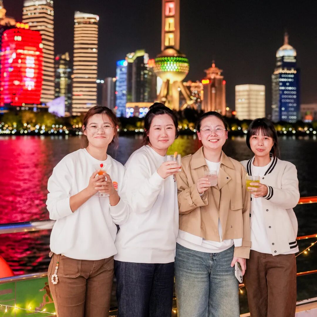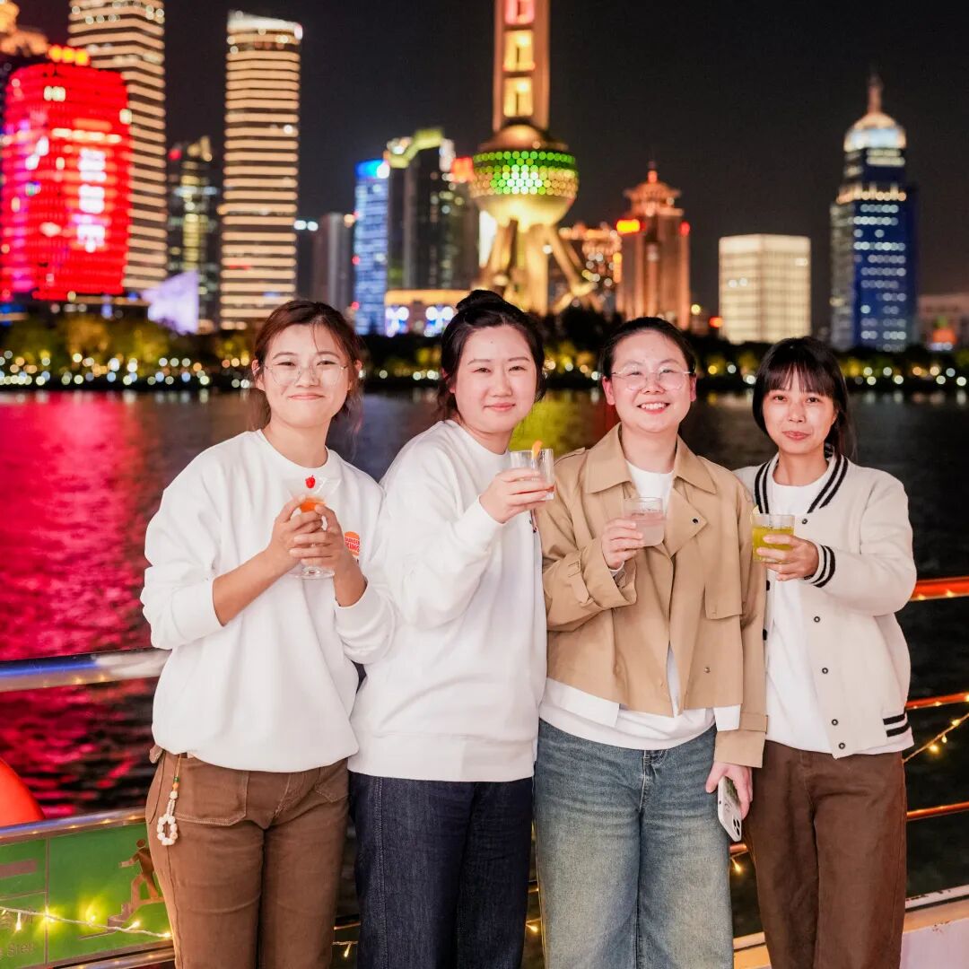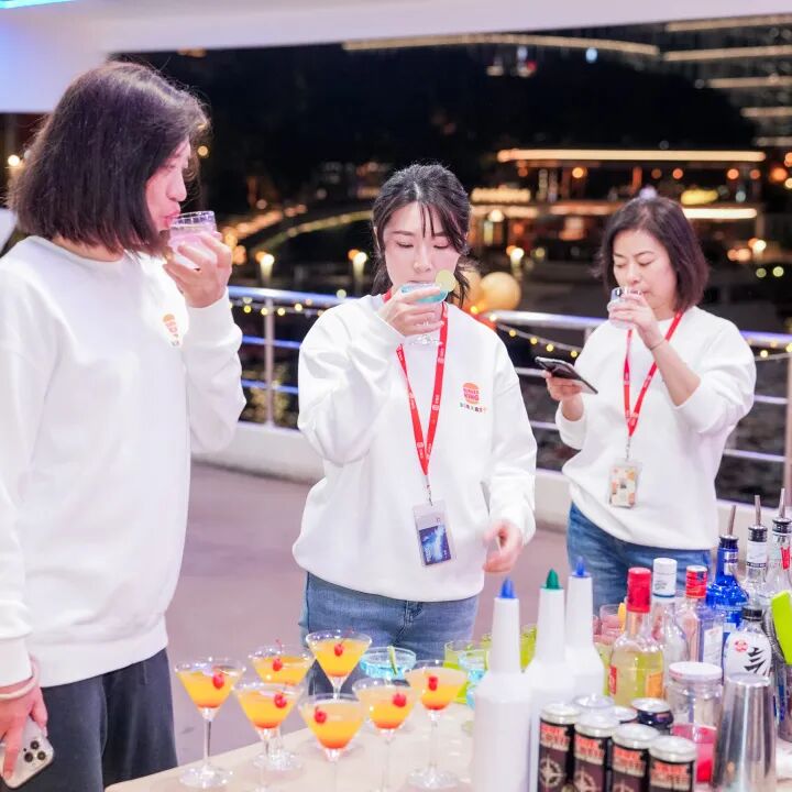 大家手持特调鸡尾酒,沉浸于璀璨夜景