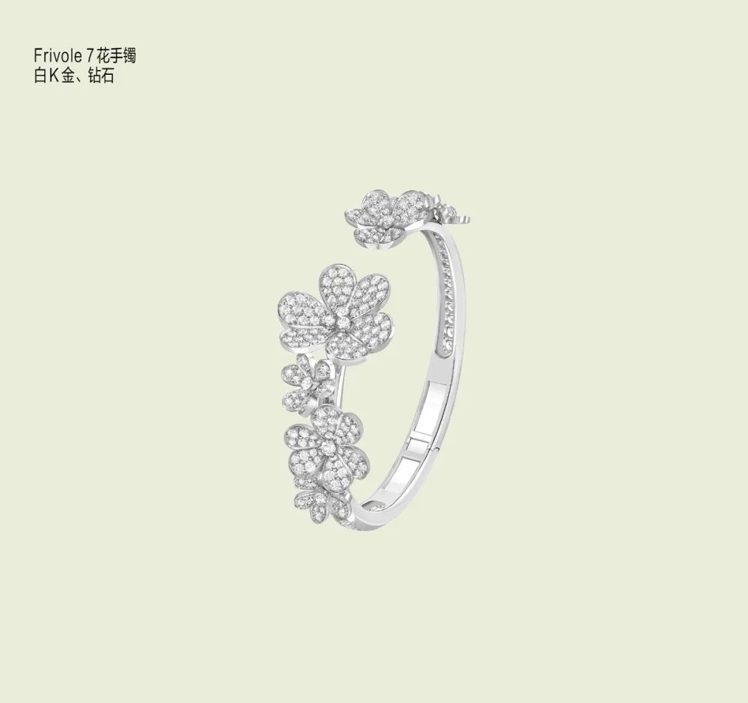 梵克雅宝通过精妙的设计与工艺,以白钻在冬日开出灵动花朵:Flowerlace高级珠宝系列,巧妙柔和蕾丝的通透美感与花卉的柔软轮廓,以点点钻光为空灵曼妙的花枝更添华美;Frivole系列,以镜面抛光工艺和铺镶美钻,在指间与腕上绽放花团锦簇;Lotus系列以白K金和白钻,打造象征美丽、纯洁和圆满的莲花……花朵的生命力,由世家的精妙工艺永恒绽放。