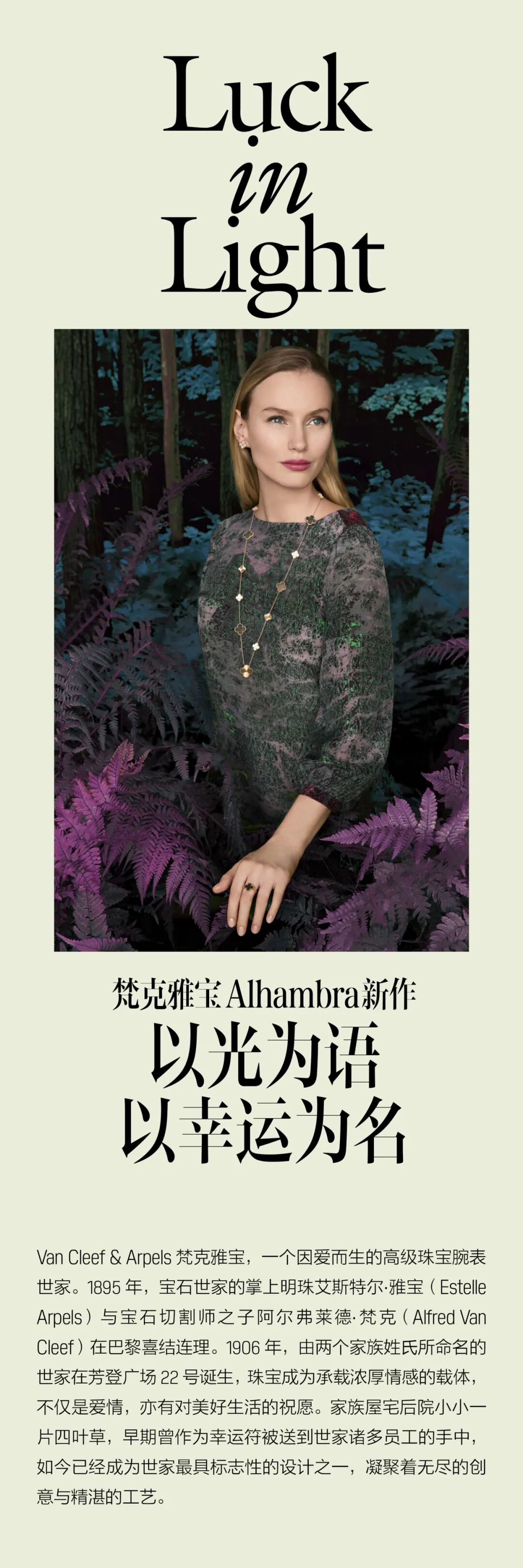 无论是Alhambra系列新作的幸运符号,还是冬季钻石臻品的纯净灵动,Van Cleef & Arpels始终以时间与工艺,将光与美凝结为永恒。