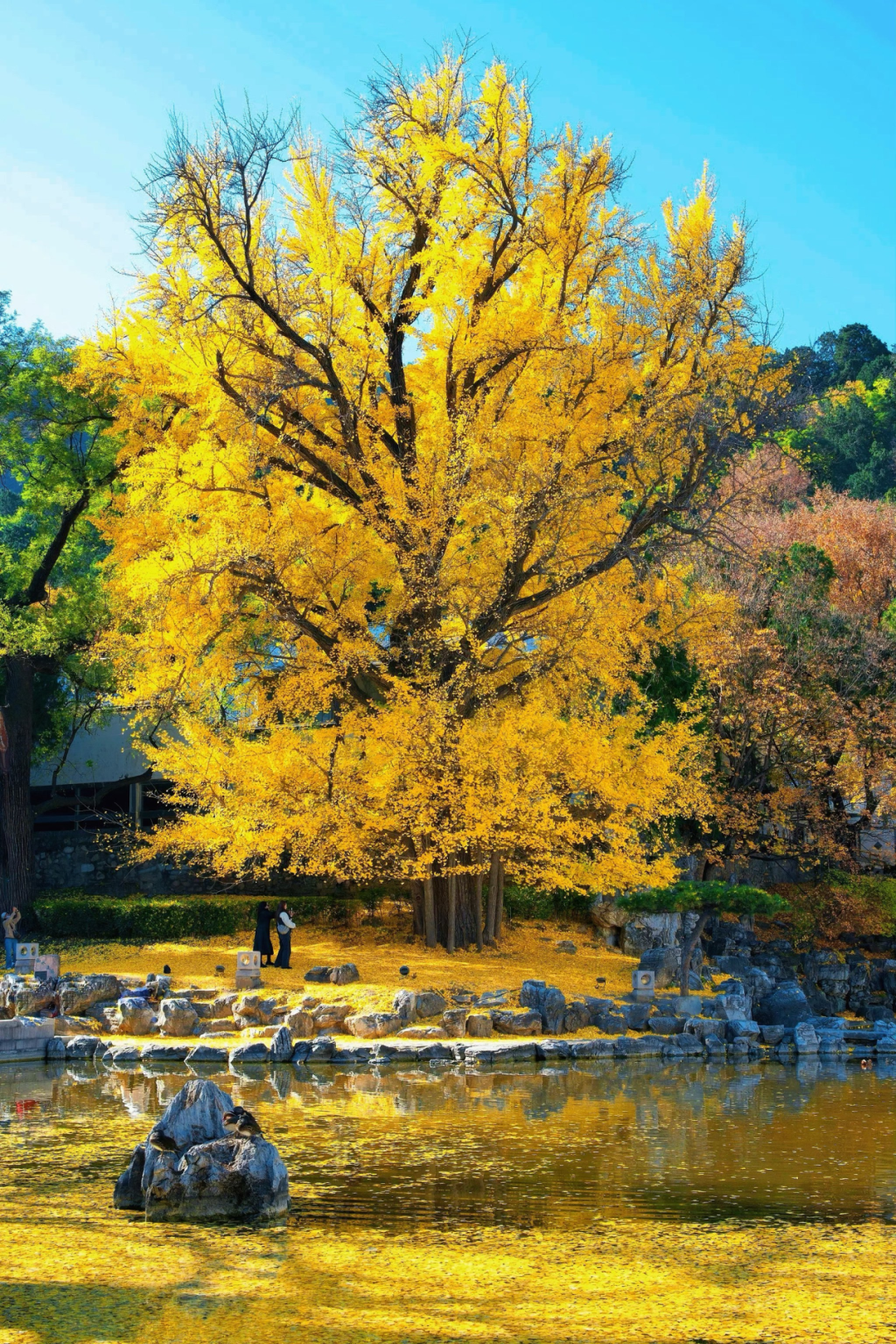 明星树带动全园热度:以香山公园-香山饭店古银杏为代表,这棵古树被誉为“活化石”。金秋之际,金黄的银杏叶随风飘落,为地面铺就金色地毯,形成令人惊叹的景致。其独特的姿态、顽强的生命力,在今年吸引了无数仰慕者专程前往。