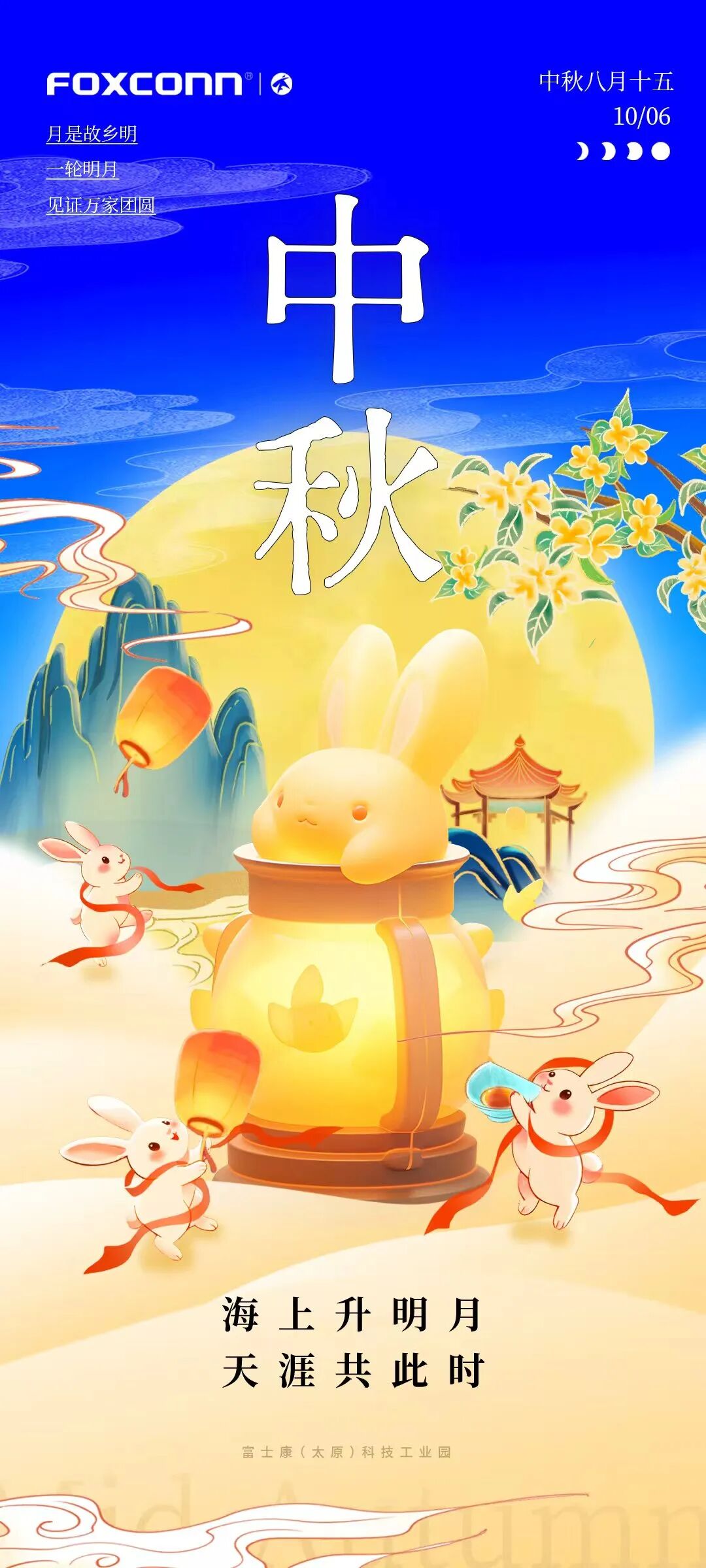 亲爱的同仁们,当桂花的香气伴着秋风拂过并州大地,我们知道,那个最温柔、最明亮的节日——中秋,正携着满满的暖意,向我们走来。无论此刻您身在故乡,还是奋斗在太原园区,这一缕月光,都愿为您捎去家的问候与我们的牵挂。