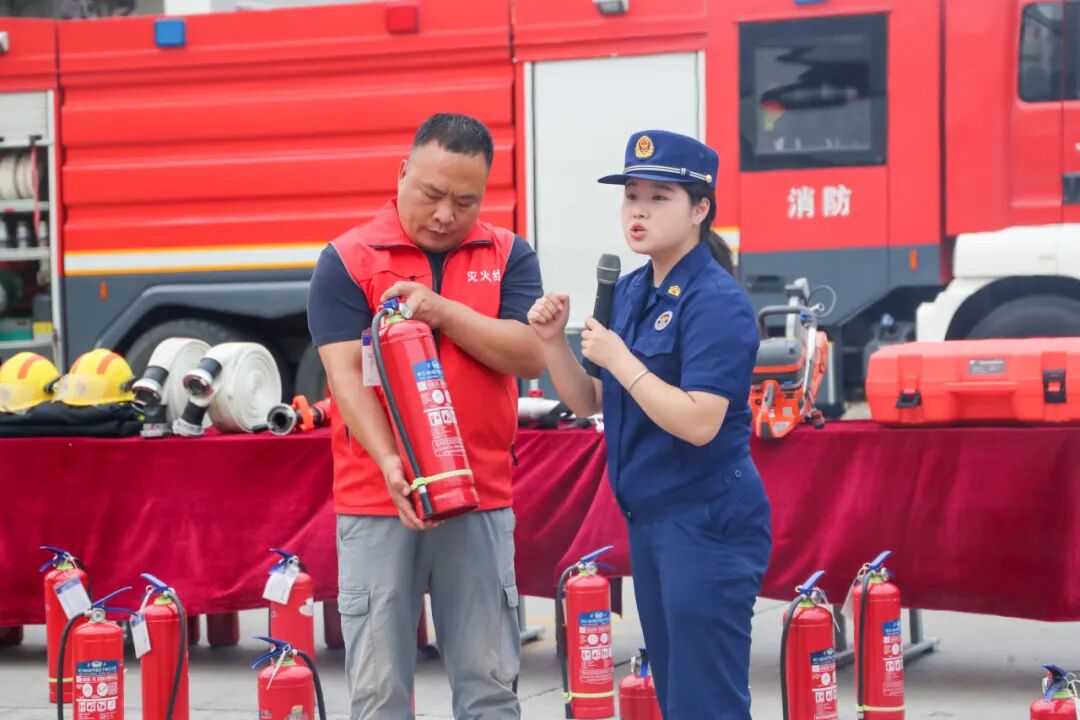 消防队宣传专员对各类消防器材进行讲解并邀请大家进行灭火实操及体验:
