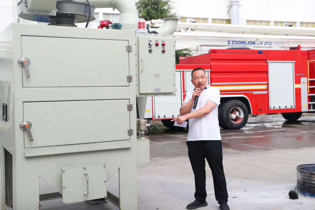 林应军主管就喷砂作业湿式集尘、机台表面粉尘清理和电气线路检查进行阐述,重点强调了设备维护、人员意识和按规范操作保养的重要性。