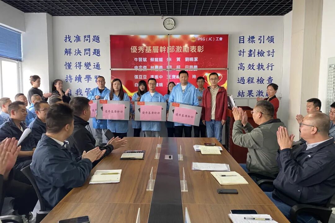 iPEG晋城制造处2024年新机种首线爬坡至今,历经数月,各位将士取得了优异战绩和荣誉,为激励广大同仁们勠力同心,更加积极投入到今后工作中,iPEG(JC)工会统筹开展激励表彰大会,对评选出在团队中做出突出贡献的优秀基层干部&技术能手&优秀基层员工进行表彰激励,助力制造各项经营指标顺利达成!