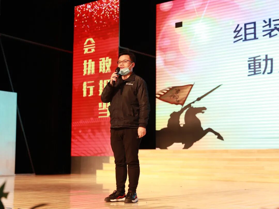 操胜利经理为大家作精神勉励,肯定了生产各部与周边的付出与努力,并对团队进行介绍,同时就组装二厂2021年工作方向作出指示。