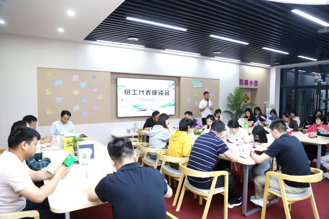 座谈会首环节“家长里短”以员工关切为核心。与会代表围绕“衣食住行、员工关爱、公司建设”等议题展开讨论,提出多项务实建议。