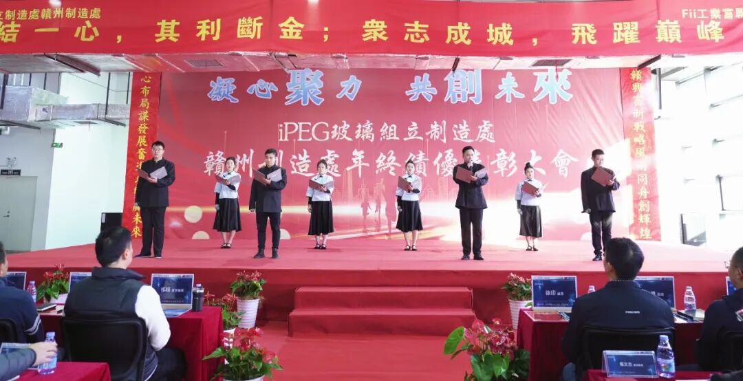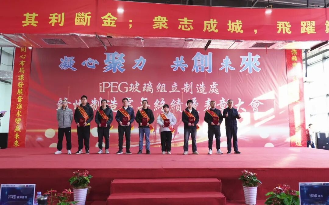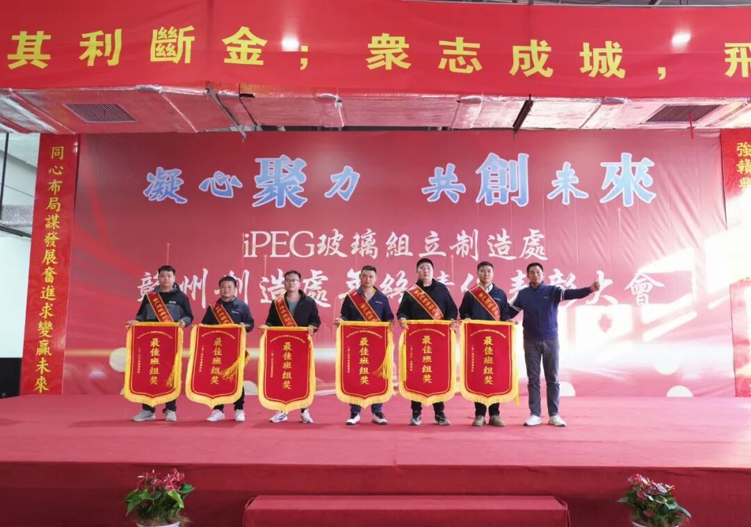 ✨随着新年的悄然来临,2025年1月10日,iPEG玻璃组立制造处赣州制造处迎来了一场意义非凡的盛会——2024年终绩优表彰大会。此次大会以“凝心聚力·共创未来”为主题,旨在回顾过去一年的辉煌成就,表彰绩优员工,同时激发团队斗志,鼓励团队在新的一年再创佳绩。🌟