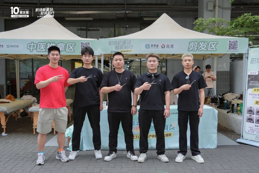 本次活动特邀了4位优剪知名发型师登场,他们面带微笑,帅气上台。面对主持人的热情提问,发型师侃侃而谈,准确迎合蓝领员工的发型需求,真诚迎接每一位前来剪发的员工。
