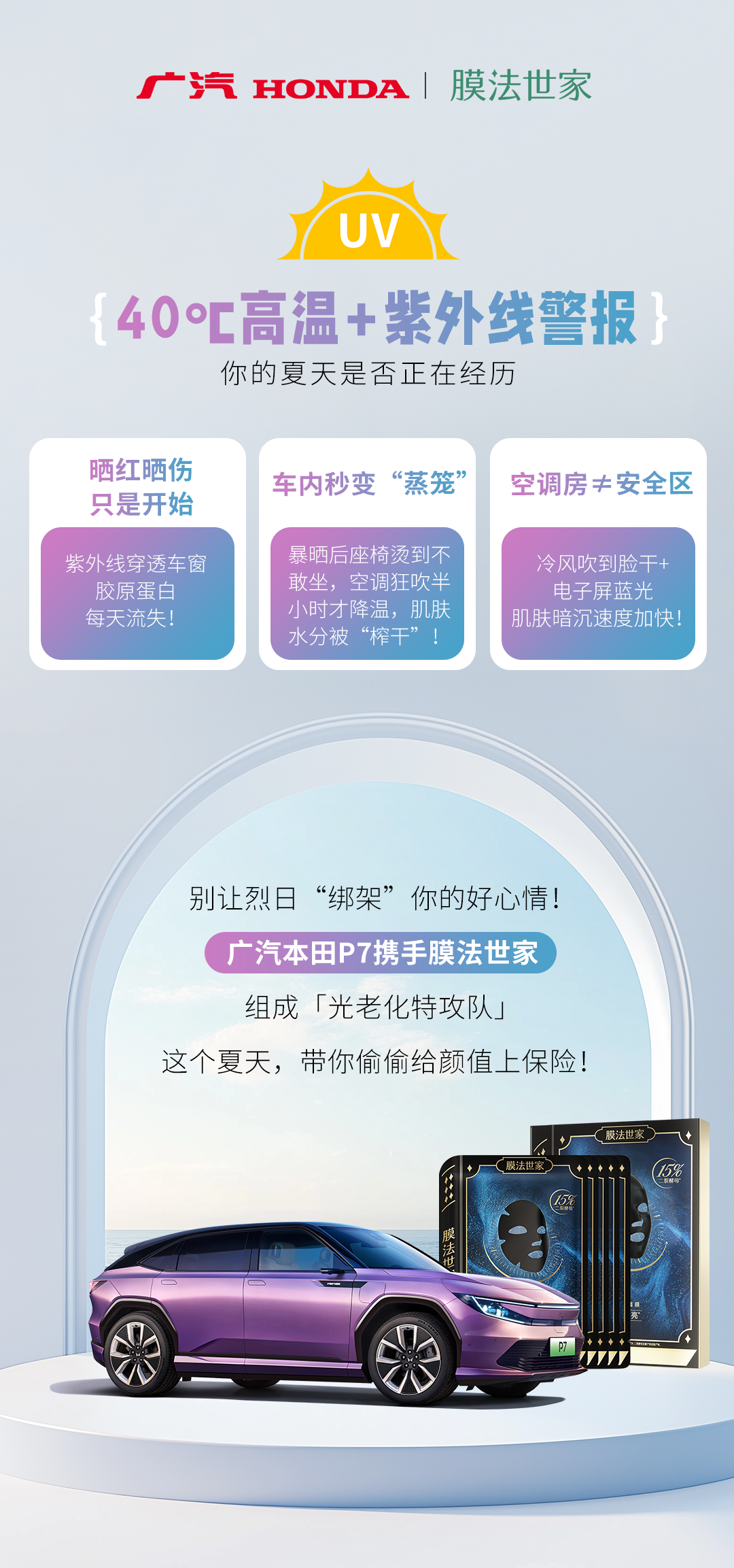 摘要:广汽本田P7携手膜法世家从车外到肌底共同打造[全链路光防护]!