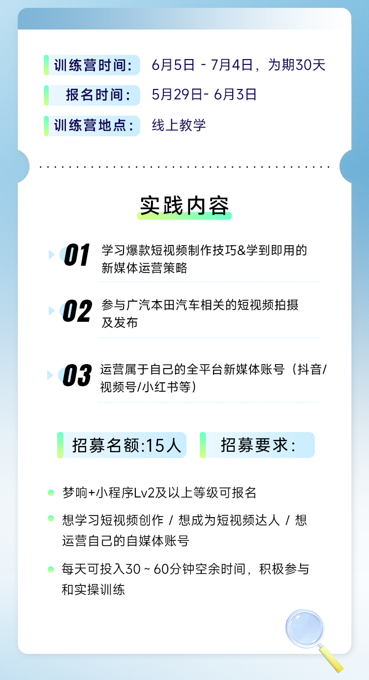 摘要:名额有限,速来!广汽本田30天特训,解锁网红密码!