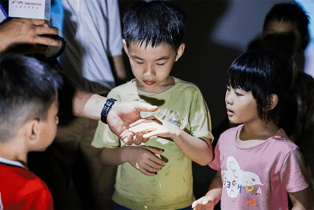 夜晚同样精彩,缕缕手电光寻找今晚这场舞剧的主角,夜色下的竹节虫尽情舒展身姿。大家在星空下搭起帐篷,耳听虫鸣、夜观星宿,畅聊人与自然,尽享夏夜乐趣。