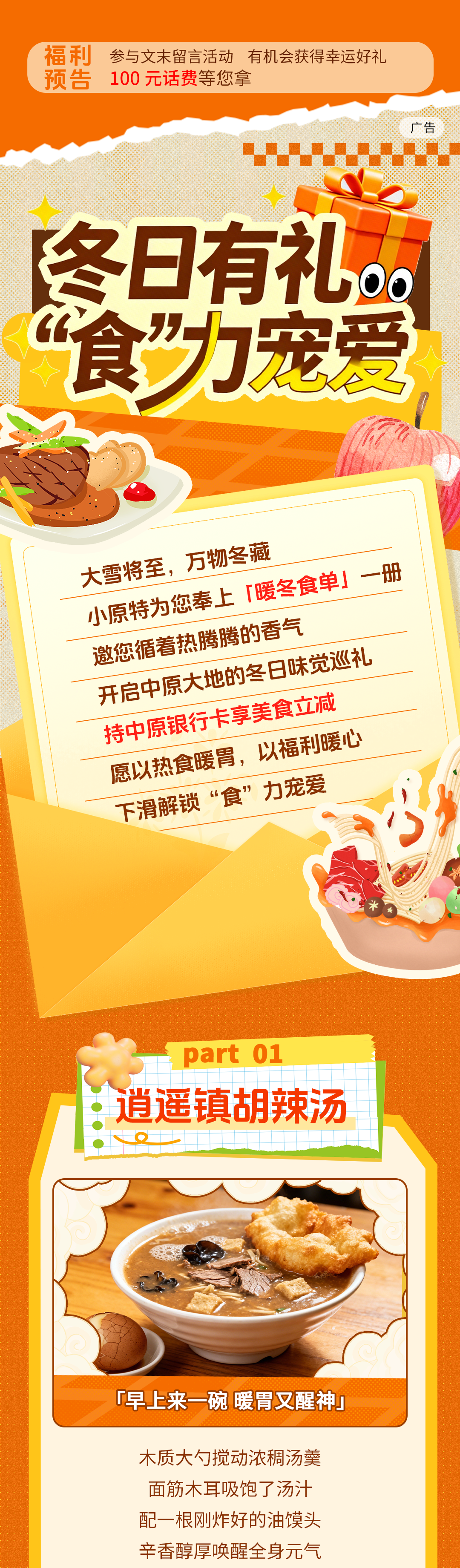 摘要:解锁暖冬“食”力宠爱!内含100元话费礼