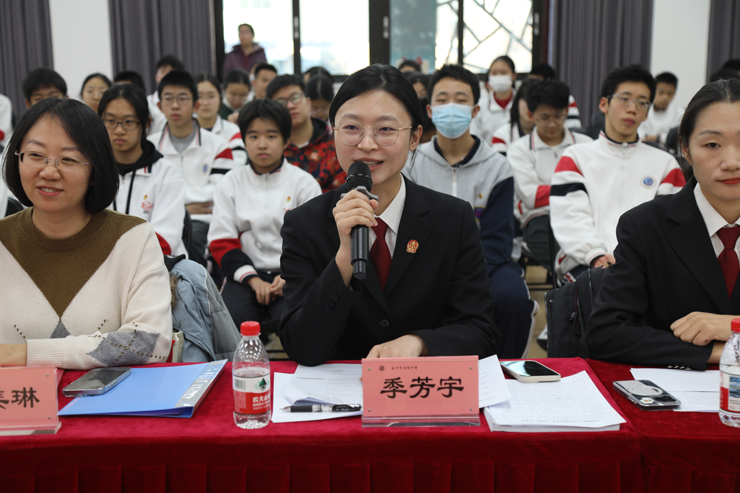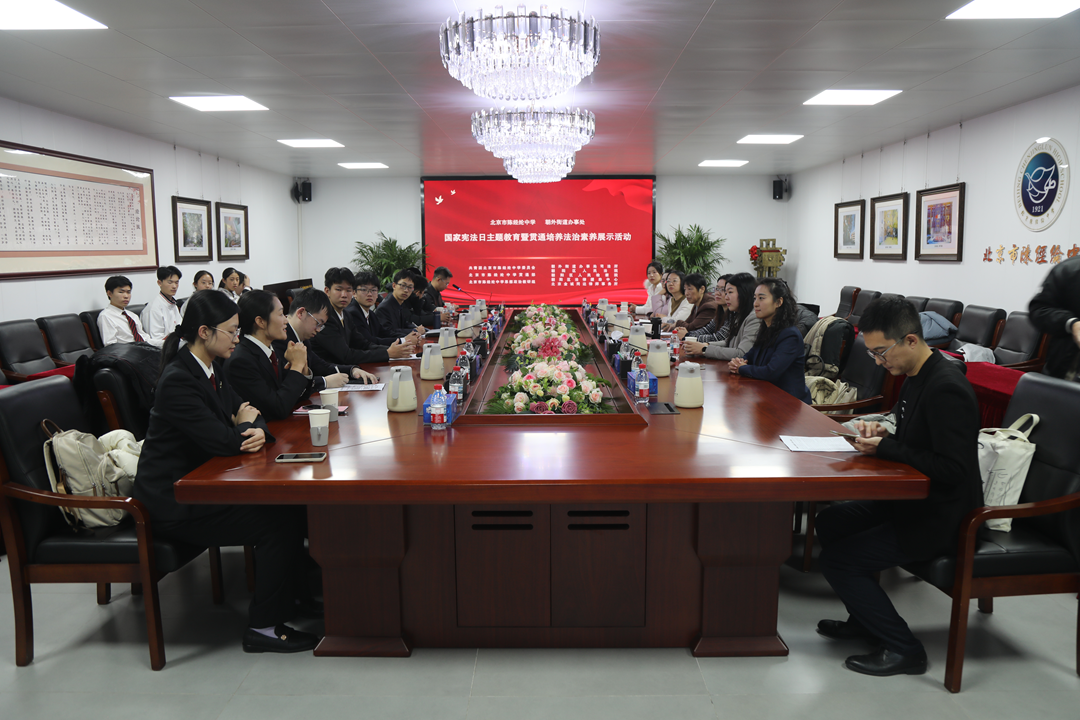 民一庭法官蒋丽梅、刑事审判庭法官助理季芳宇受邀到北京市陈经纶中学,与该校师生在国家宪法日共同组织一场模拟法庭活动,并对整个模拟法庭进行了专门指导、细致点评,让学生们在亲身实践中学习法律知识、感受法治精神。