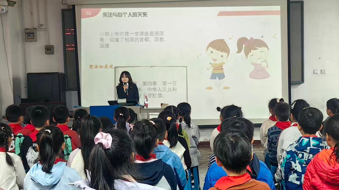双桥法庭法官助理崔铖、迟倩楠,分别走进北京第二外国语学校附属小学、兴隆小学开展“宪法精神进课堂”普法宣传活动,通过宪法知识答题、案例分析等“互动式”“沉浸式”的宣传教育,用学生喜闻乐见的形式让宪法“看得见、摸得着、说的清”, 让学生从“旁观者”变成“参与者”,成为宪法的坚定捍卫者。