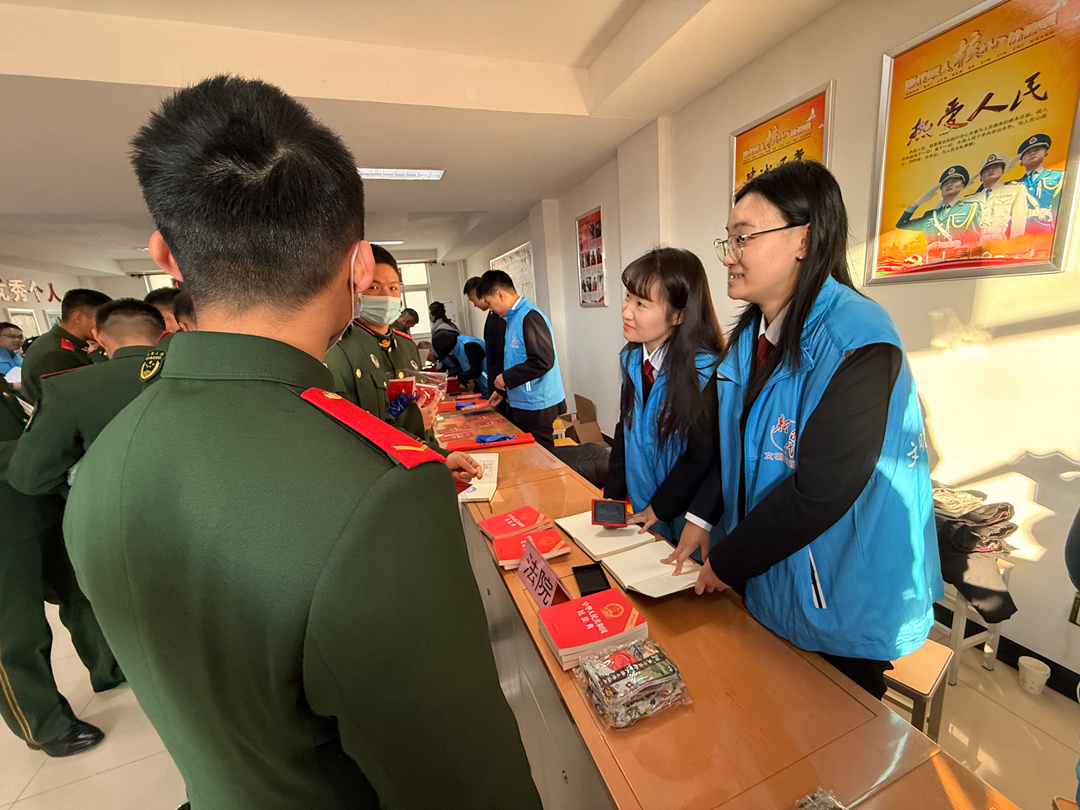 综审庭干警孙琪琪、李思桐参加朝阳区宣传文化中心等单位联合举办的“普法就‘宪’在 ‘国家宪法日’主题活动暨朝阳区新时代文明实践主题推动日”活动,走进北京武警总队机动某支队,与区检察院、区司法局、区律师协会等单位共同在活动法治市集设置法律咨询台,提供法律咨询、发放宣传资料、普及法律知识,强化军民法治共识,助力军营法治建设。