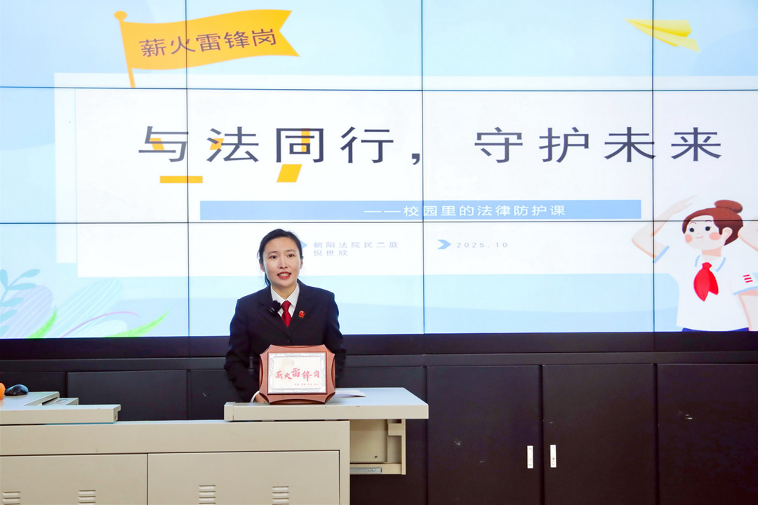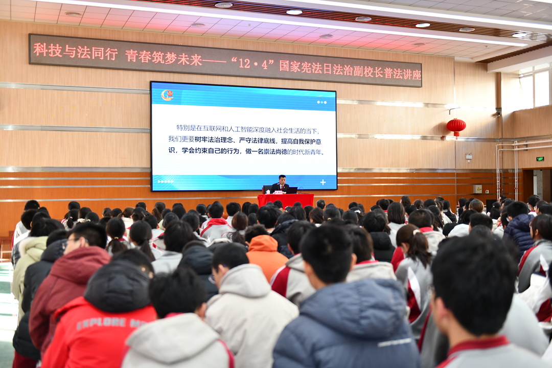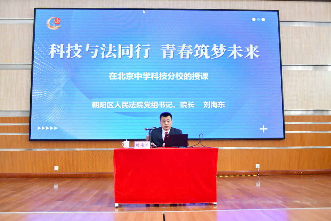 12月4日,朝阳法院党组书记、院长刘海东作为北京中学科技分校法治副校长,以《科技与法同行 青春筑梦未来》为题讲授专题法治教育课。刘海东院长结合真实案例,围绕网络暴力、网络沉迷和生成式人工智能著作权侵权等热点,深入浅出地讲解了与未成年人密切相关的法律规定,帮助同学们进一步树立法治观念,健康成长成才。