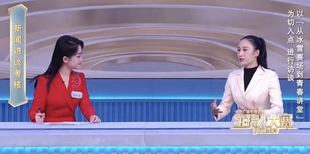 这届主持人大赛第一次以“新闻主播”作为细分赛道,总决赛“新闻访谈考核”环节的设计,尽显专业远见。比赛现场紧张激烈的氛围,也让我仿佛重回奥运赛场。节目组邀请文化名家蒙曼老师、电影《窗外是蓝星》导演朱翌冉还有我组成多领域嘉宾阵容,这对选手来说无疑充满挑战。作为被采访对象,我需要配合六强选手中随机抽选的两位完成现场访谈。而我的个人经历既包括专业体育竞技领域,又涉及体育教育,还有国际体育组织工作的部分,这对选手的知识储备、临场应变和采访逻辑都是不小考验。然而令人感到惊喜的是,王航、秦韵筝两位选手以截然不同的风格,分别与我进行了10分钟的高质量对谈,其快速的破题能力与深度思考的新闻素养不禁让我暗暗赞叹。作为常年接受采访的公众人物,我深知好的提问能让受访者更容易敞开心扉,而优秀媒体人也总能跳出既定提纲,捕捉到受访者的表达核心,让对话渐入佳境。在这一环节,我看到了总台主持人大赛着力构建的选才方向——它选拔的不是照本宣科、单项输出的“讲述者”,而是洞察事物本质、引发情感共鸣的“连接者”。