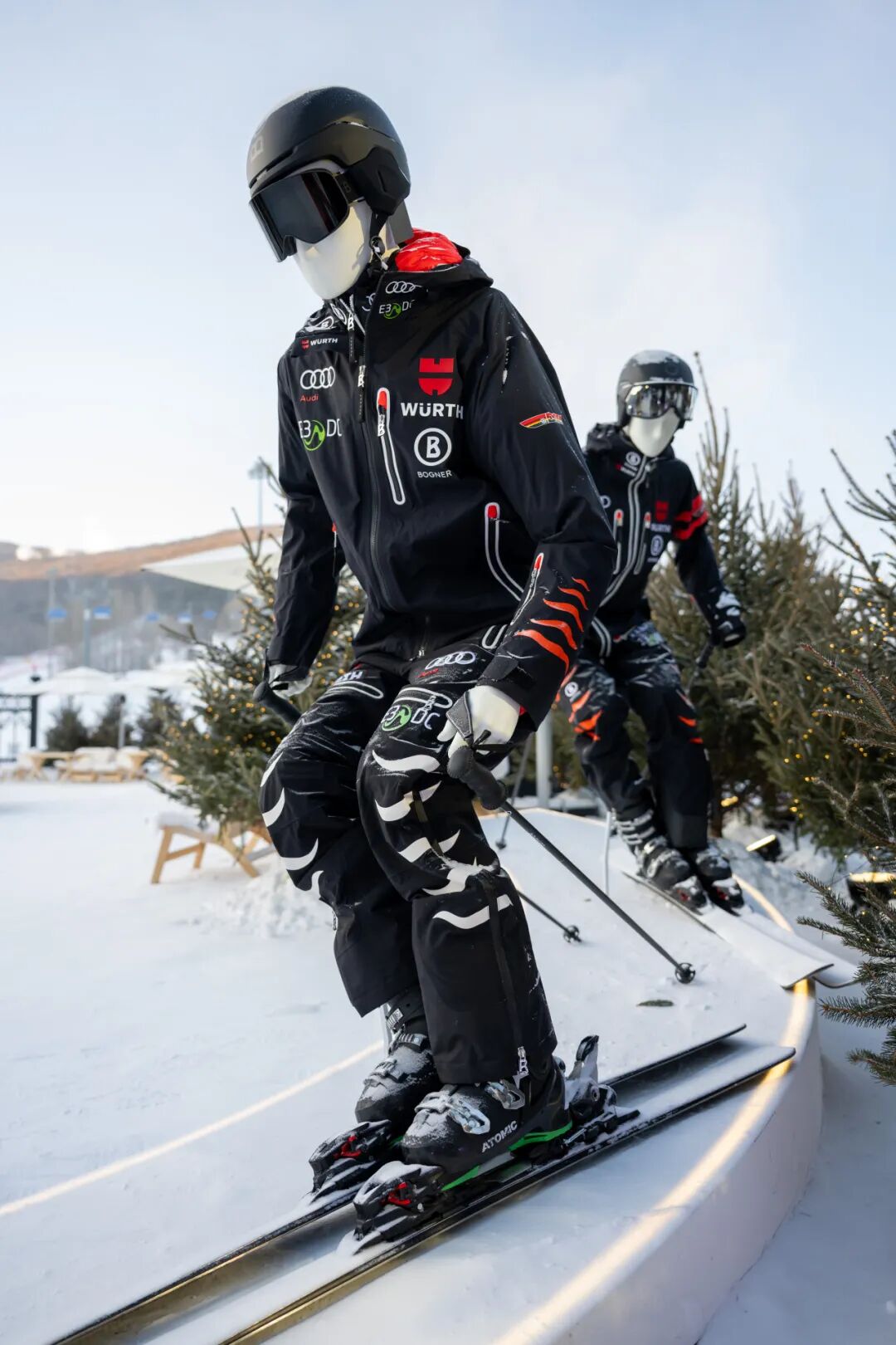 在现场,我们不仅可以看到BOGNER将历代传奇冠军的“战袍”悉数展现,更以BOGNER三大经典系列,为“冠军精神”提供了具体的载体。DSV系列,作为BOGNER品牌对极致专业精神最直接的注解,是为德国国家队专属打造的至高荣誉与性能象征。这一系列将专业竞技功能与德意志的精湛工艺完美结合,见证了品牌与国际赛事的深厚渊源。其设计中的标志性火焰纹理,并非装饰,而是竞技意志的视觉图腾——它象征着滑雪运动的炽热激情,以及突破极限的持续驱动力。DSV系列代表了冠军精神中永不熄灭的战斗本能,所承载的冠军信念是:即便面对最艰难、最险峻的赛道,每一位穿着者也要拥有如同火焰般燃烧的拼搏心态,追求无可动摇的卓越。