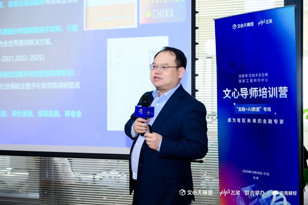 12月6日至7日,“文心导师培训营——‘金融+AI 数据’专场”在北京成功举办。本次活动由百度文心大模型与贝壳财经联合主办,汇聚了来自银行、证券、保险、基金及学术机构的三十余位资深从业者与研究学者,共同围绕人工智能时代金融数据的构建与应用开展了一场高强度、实战性的研讨探索。