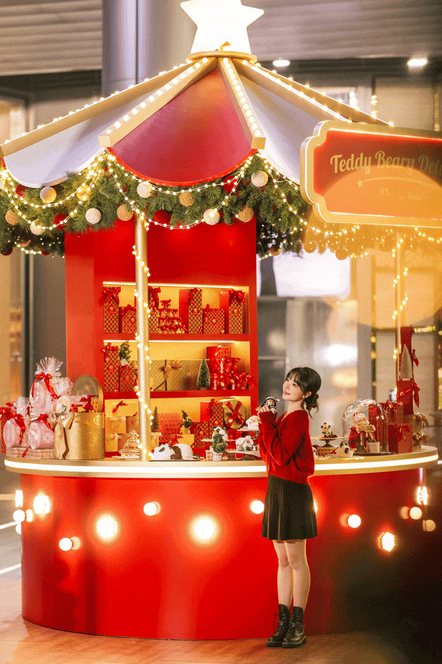节日季期间,系列活动持续加码。“萌趣巡游”定时上演,限定泰迪熊穿梭场内与公众互动;12月24日,Steiff特邀大使将限时返场送上祝福。打卡装置并发布小红书,还有机会获得定制周边。
