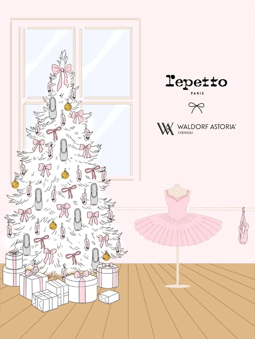 成都华尔道夫酒店携手Repetto 打造“Elegantly Pink 绮粉圣诞”。