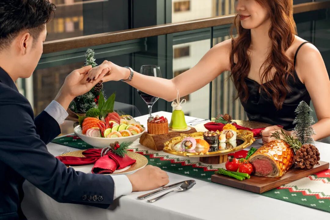 仪式结束后,宾客移步至西餐厅,享用酒店特别准备的圣诞主题晚宴。现场还设有互动抽奖、热红酒派送等环节,欢声笑语中为夜晚画上圆满句号。