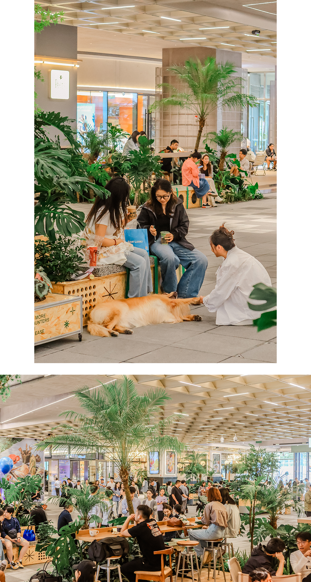 该空间由全球最大建筑事务所 Gensler 设计,以近3000株绿植营造森系环境,通过重构动线、植入多元场景与融合复合功能,将自然与商业有机结合。