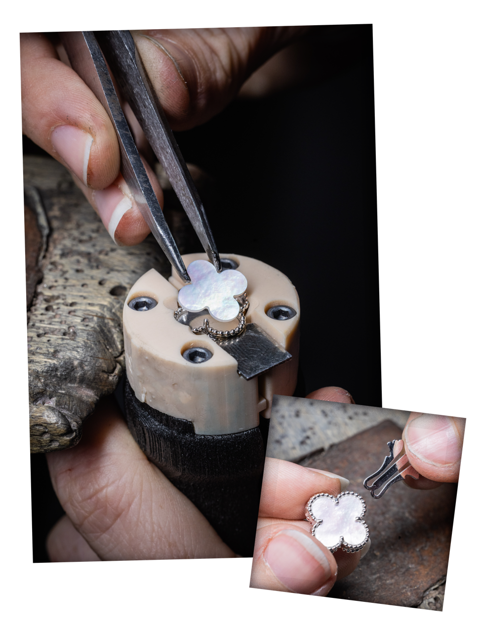 今天,这一传统在Alhambra四叶幸运系列中得以延续。部分四叶幸运主题图案巧妙地嵌入精巧的英式扁夹装置中,让作品得以灵动变换而不失其雅致外观。这一高度隐蔽的装置经过多轮精密测试,确保其稳固、耐用且操作简便流畅,使每件作品都能优雅地伴随佩戴者,随时焕发新的光彩。