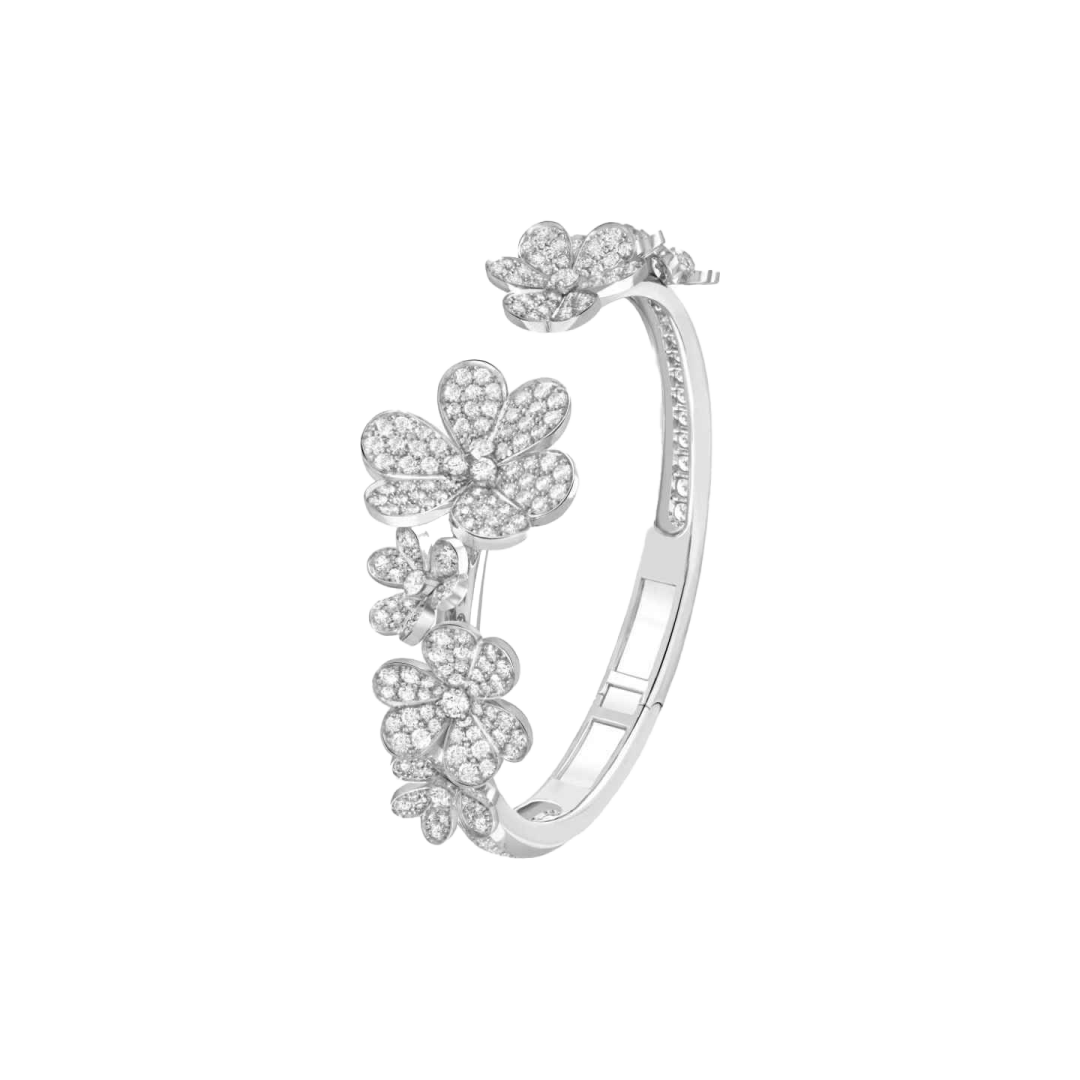 自然赋予世家无限想象,另一大经典系列——Frivole系列,设计灵感便源自花卉,设计灵感便源自花卉,它以跃动的花瓣形态和钻石的光辉,展现了冬日早晨的清新与活力。每一朵花瓣都仿佛在晨曦中绽放,如同艾米莉·狄金森在《冬日晨曦》中所写:“每一片花瓣,都是对晨曦的回响”。钻石的镶嵌,不仅在世家的经典高级珠宝上璀璨生辉, 更将这份回响定格在精致珠宝之上,赋予每一朵花朵生命的力量。世家挥洒巧手匠心,以非凡造诣灌注钻石选材以及镜面抛光等工序,淬炼出光芒万丈的花冠,以和煦光泽映照柔嫩肌肤。Frivole系列用绽放的花瓣,带来活力与光明,展现冬季的另一面——不仅仅是静谧与冰冷,更是充满生命的律动和激情。