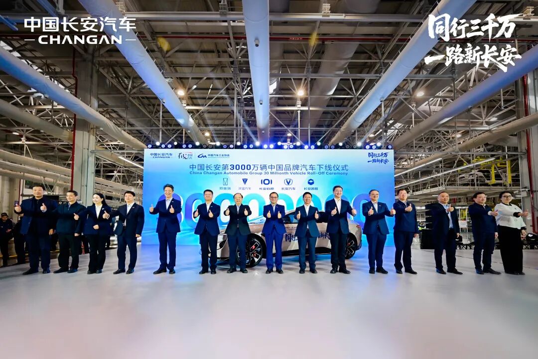 朱华荣在讲话中表示,第3000万辆中国品牌汽车下线,是中国长安汽车的里程碑时刻。自进入汽车领域以来,从中国第一辆微车下线到突破1000万辆,长安用了30年,从1000万辆到第2000万辆中国品牌汽车下线用了7年,而从2000万辆到第3000万辆中国品牌汽车下线,长安仅仅用了4年半。从0到3000万,是中国实力由弱到强的缩影,也是中国汽车产业的奋进篇章,更是全球1亿人美好出行生活的体现。今日之长安,是党中央坚强领导,国务院国资委等国家部委、重庆等地方政府悉心指导的结果,是广大用户厚爱,合作伙伴、社会各界长期支持的结果,是一代代长安人无私奉献的结果。立足3000万的新起点,中国长安汽车将坚持战略引领,坚持创新驱动,坚持全球发展,坚持用户至上,坚定践行汽车强国战略,坚决落实党中央决策部署,扛起新央企的担当,扎根重庆、辐射全球,携手所有生态伙伴,创造更智能、更绿色、更美好的出行生活,不断满足人民群众对美好生活的向往。